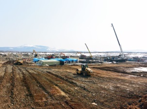 На сегодняшний день на основной площадке строительства продолжается бетонирование фундаментов каркаса главного корпуса. Также в непосредственной близости от стройплощадки идет строительство временного жилого городка для рабочих. В рамках реализации объектов внеплощадочной инф