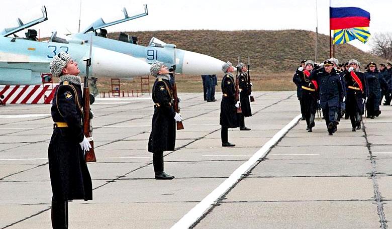 Год назад наши ВВС и ПВО на полуострове представляли лишь достаточно хилые силы Черноморского флота. Из ударных средств – всего 18 фронтовых бомбардировщиков Су-24 и 4 тактических самолёта-разведчика Су-24МР 43-го отдельного морского штурмового авиаполка (аэродром Гвардейское под Симферополем). А воздушному противнику должны были противостоять 18 стареньких комплексов ПВО «Оса-АКМ» 1096-го зенитно-ракетного полка, который входил в состав 810-й отдельной бригады морской пехоты.